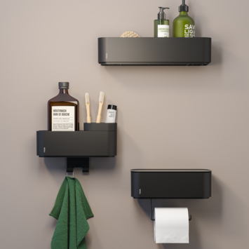 Het Tiger 2-store opbergbakje in het zwart is stijlvol, multifunctioneel en een antwoord op al je opbergproblemen. Haak voor je handdoek? Juist. Je tanden poetsen onder douche? Geen probleem. Dit opbergbakje uit de 2-Store serie is jouw antwoord op al je opbergproblemen en kan je zowel bij de wastafel als in de douche plaatsen. Het 2-store opbergbakje is tevens praktisch.Het bakje is goed schoon te houden dankzij de uitneembare inzet en er blijft geen water in het bakje staan dankzij de afwateringsgleuven. Tevens zorgt de stabilisatie aan de achterzijde ervoor de producten recht in het rekje blijven staan.