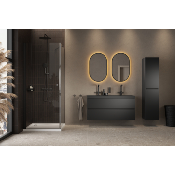 De Tiger T-line Quadro opbouwwastafel van 100 cm in mat zwart zet direct de toon in je badkamer. De rechte lijnen en minimalistische vormgeving zorgen voor een strak design, terwijl de matzwarte steen look een stoere, industriële uitstraling geeft. De diepe enkele waskom biedt veel comfort en maakt de wastafel geschikt voor intensief dagelijks gebruik. Het polybeton oogt als natuursteen, voelt solide aan en versterkt het luxe karakter. Met één kraangat en een externe overloop is de wastafel functioneel en overzichtelijk. Het brede formaat zorgt voor extra ruimte rondom de waskom.