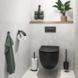 De matzwarte vrijstaande reserverolhouder uit de Orion serie wordt geleverd met twee eindkapjes: één in gunmetal en één in zwart. Zo kun je eenvoudig een subtiel accent aan je accessoire toevoegen. De Orion serie heeft een uitgebreid assortiment aan aanvullende accessoires in dezelfde stijl, waardoor je een harmonieuze uitstraling in je badkamer of toiletruimte kunt realiseren.