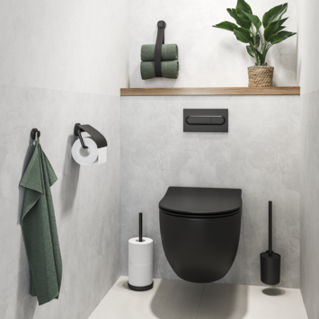 Verander eenvoudig van stijl met de toiletborstel met houder uit de Orion serie! Deze borstel wordt geleverd met twee stijlvolle decorringen: één met een zwarte ribbelstructuur en één in gunmetal. Op die manier kun je moeiteloos een subtiel accent aan je accessoire toevoegen.
