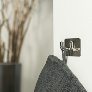 De Tiger Pinky Double haak rvs is uitgevoerd in RVS en kan worden bevestigd met de gemonteerde plakstrip. De haak is stijlvol en past perfect in een moderne badkamer, keuken of in het toilet.