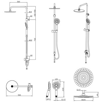 Deze douche set is mooi en functioneert prima. De handdouche heeft 3 standen, allemaal fijn, en is ook in hoogte verstelbaar. De regenkop is heerlijk.