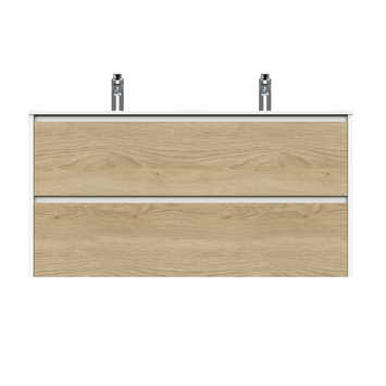 Tiger Reverse Meubelset 120 cm met 2 lades Naturel eik / Mat wit inclusief Oval wastafel dubbel Hoogglans wit