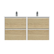 Tiger Reverse Meubelset 2x60 cm met 4 lades Naturel eik / Mat wit inclusief 2 Quadro wastafels Hoogglans wit1.349.00