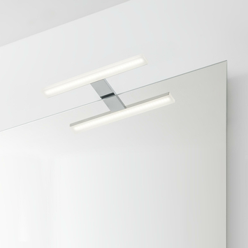De Tiger Spiegelverlichting Eros Chroom 30cm is een moderne designlamp die je badkamer voorziet van luxueus licht. De Ledlamp met een lichtopbrengst van 500 Lumen voorziet je van het nodige licht bij het scheren of aanbrengen en verwijderen van make-up. Bovendien zorgt de lichtkleur van 4000Kelvin voor een sfeervolle belichting van de hele badkamer. Met de energiezuinige LEDlamp die slechts een verbruik heeft van 7,2Watt en een levensduur van 20.000 branduren is deze spiegellamp een zeer economische aankoop. De lamp is vocht- en corrosie bestendig en IP44 bestendig tegen spattend water boven de wastafel. Door de geïntegreerde transformator is deze spiegellamp direct aan te sluiten op het lichtnet. Monteerbaar bovenop (spiegel)kast of kolomkast.