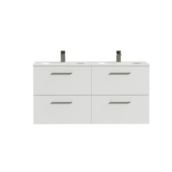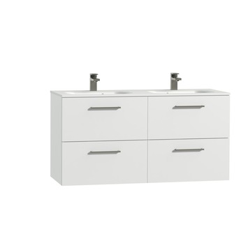 Tiger Studio badkamermeubel 120 cm hoogglans wit met wastafel dubbel polybeton mat wit greep rvs rechthoekig