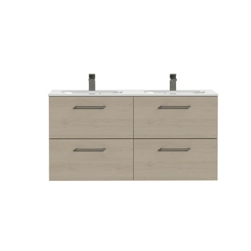 Tiger Studio badkamermeubel 120 cm naturel eiken met wastafel dubbel keramiek hoogglans wit greep rvs afgerond
