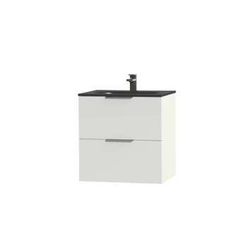 Tiger Studio badkamermeubel 60 cm hoogglans wit met wastafel polybeton mat zwart greep rvs plat