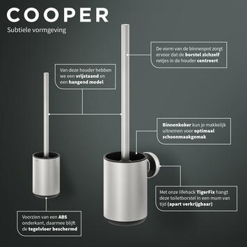 Tiger toiletborstel Cooper met houder RVS geborsteld / Zwart