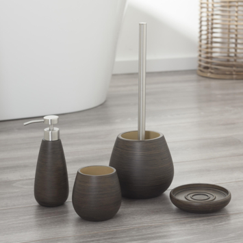 Het Tiger Toiletborstelhouder Miyagi Wood heeft een natuurlijke houten uitstraling. Een schoon toilet is een belangrijk onderdeel van het huishouden. Het Sealskin toiletborstelgarnituur is het juiste materiaal om het toilet te onderhouden. De toiletborstel heeft een stijlvolle metalen uitstraling en de borstel blijft gemakkelijk passen in de houder. Er zijn van deze serie diverse vrijstaande sanitair accessoires verkrijgbaar.