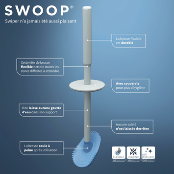 Deze witte wc-borstelhouder van Tiger Tess is de held van de sanitaire ruimte. Hij is ontworpen om jouw badkamer en toilet te voorzien van meer gemak. Snel even het toilet schoonmaken? Geen probleem, deze toiletborstelhouder heeft een handig opbergvak voor een fles toiletreiniger. Na gebruik zet je hem weer eenvoudig terug in het compartiment. Draai hem om en hij staat uit het zicht. Zo eenvoudig kan het zijn. Deze houder is voorzien van de nieuwe Swoop® flexibele toiletborstel. Met deze innovatieve borstelkop reinig je met gemak moeilijk bereikbare plekken en dankzij de vorm en het speciale materiaal van de borstel blijft er geen viezigheid achter en druppelt hij nauwelijks na als je hem terug in de houder plaatst. Tiger Tess is innovatief en eigentijds met de herkenbare kwaliteit van Tiger.