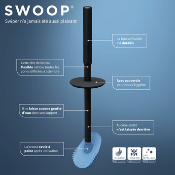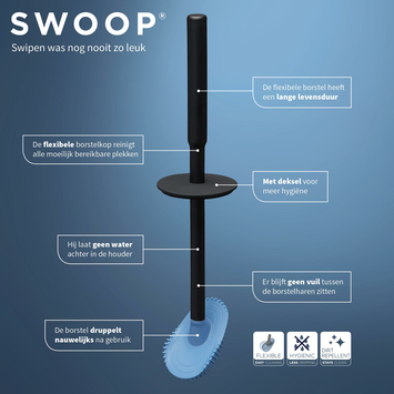 Een fris en modern gevoel in toilet of badkamer dankzij deze blauwe wc-borstelhouder van Tiger Tess. Hang hem aan de muur of zet hem neer. Plak of monteer hem met schroeven en pluggen. Het is helemaal aan jou. Deze houder is voorzien van de nieuwe Swoop® flexibele toiletborstel. Met deze innovatieve borstelkop reinig je met gemak moeilijk bereikbare plekken en dankzij de vorm en het speciale materiaal van de borstel blijft er geen viezigheid achter en druppelt hij nauwelijks na als je hem terug in de houder plaatst. Tiger Tess is innovatief en eigentijds met de herkenbare kwaliteit van Tiger.