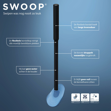Een fris en modern gevoel in toilet of badkamer dankzij de blauwe wc-borstelhouder van Tiger Tess. Deze vrijstaande houder is voorzien van de nieuwe Swoop® flexibele toiletborstel. Met deze innovatieve borstelkop reinig je met gemak moeilijk bereikbare plekken en dankzij de vorm en het speciale materiaal van de borstel blijft er geen viezigheid achter en druppelt hij nauwelijks na als je hem terug in de houder plaatst. Draai de houder om en de borstel is niet langer meer in het zicht. Tiger Tess is innovatief en eigentijds met de herkenbare kwaliteit van Tiger.