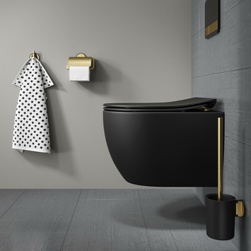 De toiletborstelhouder uit de Tune serie is uitgevoerd in de kleuren geborsteld messing en mat zwart. De toiletborstel met houder is voorzien van een krachtige 3M tape waardoor montage op iedere gladde en stevige ondergrond heel gemakkelijk is. Mocht de ondergrond niet geschikt zijn voor dubbelzijdige tape, dan bestaat de mogelijkheid de houder aan de muur te bevestigen met schroeven en pluggen. De Tune serie bevat een groot aantal aanvullende accessoires voor de badkamer en het toilet.