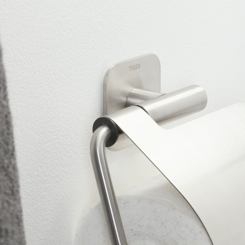 De Tiger Toiletrolhouder Colar RVS met Klep is uitgevoerd in geborsteld rvs. De toiletrolhouder is voorzien van een krachtige dubbelzijdige tape waardoor montage op iedere gladde, stevige ondergrond zeer eenvoudig is. De Colar serie bevat tevens meerdere varianten van de toiletrolhouder, maar ook een groot aantal aanvullende accessoires voor de badkamer en toiletruimte in dezelfde stijl. Alle artikelen uit de Colar serie zijn ook verkrijgbaar in chroom.