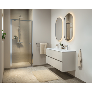 De Tiger Condo in greige is perfect voor wie ruimte en rust wil in de badkamer. Met een breedte van 120 cm biedt deze moderne, greeploze kast volop opbergruimte in de twee ruime lades. Deze lades zijn gemaakt van hoogwaardig hout en sluiten geruisloos dankzij het soft-close systeem, wat zorgt voor een fijne gebruikservaring. Het ontwerp is tijdloos en past moeiteloos in elke woonstijl. Bovendien is deze kast geproduceerd in Europa en gemaakt van gecertificeerd hout uit verantwoord bosbeheer, wat een extra pluspunt is. Combineer de kast met de bijpassende kolomkast voor een prachtig geheel. Maak je badkamer compleet en geniet van de functionaliteit en uitstraling die deze kast biedt.