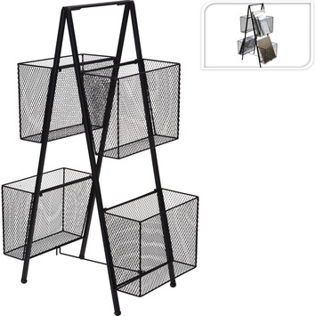 Het Tijdschriftenrek 43x23x79 cm is gemaakt van zwart metaal. Dit tijdschriftenrek is een ideale manier om de tijdschriften op een eenvoudige manier op te bergen. Maar ook leuk om bijvoorbeeld in de keuken je favoriete koekboeken in te bewaren. Het rek is niet alleen functioneel maar geeft tegelijkertijd een speelse en moderne toevoeging aan de woon- of slaapkamer, keuken of kantoor.