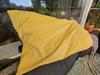 1 of 2 jaar geleden de gele gekocht en ingespoten met vochtwerende spray. Ik heb overdag de volle zon op t balkon staan en laat t kussen gewoon op de loungebank liggen. Ook bij lichte regen. In de winter ligt hij alleen onder de hoes.