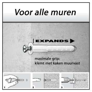 Als het echt vast moet zitten,in beton tot gips,dan is voor Toggler niets te gek,de Toggler alligator bek bijt zich vast en u heeft van los zitten niet meer last,mits op de goede manier gemonteerd met de afgestemde plug uit het brede assortiment, dan weet u dat u safe bent,mocht u vragen hebben?dan kunt u via de site van Toggler en een contact formulier info vragen,u krijgt dan snel antwoord op uw vraag,kan ik u melden eigen ervaring.