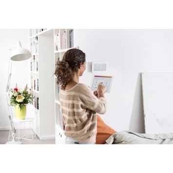 Je bedient Toon® heel eenvoudig via het touchscreen. Of op afstand met de app voor smartphone en tablet. Net als je verlichting met de Philips Hue lampen en via Slimme Stekkers op Toon® aangesloten apparaten. Zo kom je nooit meer thuis in een koud en donker huis.