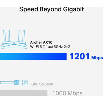De TP-Link Archer AX10 is een krachtige en snelle AX of WIFI 6 router. Zijn grote bereik en snelheid in combinatie met de krachtige triple-core processor, zorgen ervoor dat iedereen in huis tegelijk op volle snelheid kan downloaden en uploaden. Zo kan iedereen in huis in 4K- of 8K streamen en andere intensieve netwerktaken uitvoeren, zonder dat andere gezinsleden hier last van ondervinden. Belangrijkste kenmerken van de TP-Link Archer AX10: HomeCare Via TP-Link HomeCare worden alle apparaten binnen het netewerk beveiligd. De antivirusdatabase wordt continu door Trend MicroTM bijgewerkt. Met het krachtige ouderlijk toezicht kun je de tijd online beperken en ongepaste content blokkeren aan de hand van unieke profielen voor ieder gezinslid. Ideaal geschikt voor woningen waar: Intensieve netwerktaken tegelijk worden uitgevoerd (4K streamen en downloaden). Je installeert de Archer AX10 binnnen enkele minuten. Verbind de AX10 via een netwerkkabel met de modem van je provider. Download de Tether app. Verbind de router via bluetooth en volg de instructies in de app.