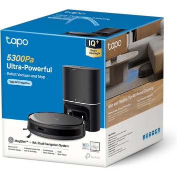 De TP-Link Tapo RV20 Max Plus is een robotstofzuiger met dweilfunctie die beschikt over de krachtige 5300 Pa zuigkracht en MagSlim™ LiDAR-navigatie. De LiDAR-technologie zorgt ervoor dat de robot snel en precies de ruimte in kaart brengt, zodat hij efficiënte reinigingsroutes kan plannen en herhalingen minimaliseert. Dankzij de geïntegreerde sensor kan de robot ook door lage ruimtes navigeren, wat het risico op vastlopen of verdwalen vermindert. Het automatische leegstation is uitgerust met een 3 liter stofzak, die tot twee maanden stof kan vasthouden. Met een hoogte van slechts 83 mm kan de robot onder meubels zoals bedden en banken reinigen, zodat ook moeilijk bereikbare plekken worden meegenomen.