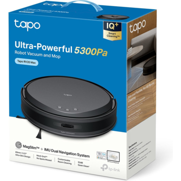 De TP-Link Tapo RV20 Max is een robotstofzuiger met een innovatieve dweilfunctie, die zorgt voor een extra grondige reiniging van je vloeren. Met een krachtige zuigkracht van 5300 PA maakt de stofzuiger snel korte metten met stof, vuil en dierenharen op alle soorten vloeren. Het slanke ontwerp van slechts 83 mm maakt het mogelijk om onder meubels zoals banken en bedden te reinigen, zodat verborgen plekken niet overgeslagen worden.