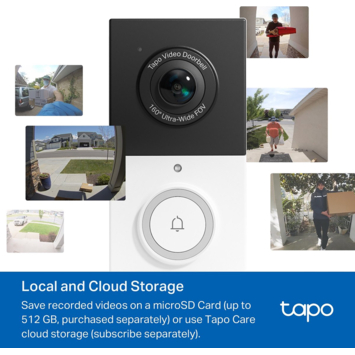 De deurbel heeft een batterijduur van zes maanden, waardoor je minder vaak hoeft op te laden en continu bescherming hebt. Je kunt de beelden lokaal opslaan zonder abonnement, en de deurbel ondersteunt zowel lokale opslag via een microSD-kaart (tot 512 GB) als cloudopslag via Tapo Care. Je ontvangt gratis meldingen bij bewegingen van mensen, voertuigen, huisdieren of pakketten, zodat je altijd op de hoogte bent van de situatie bij je voordeur.