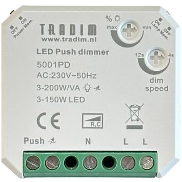 Met de Tradim LED Pulsdimmer 3-200W haal je een veelzijdige oplossing in huis voor het nauwkeurig regelen van je verlichting met een pulsschakelaar. Deze dimmer wordt discreet achter een pulsschakelaar gemonteerd en bediend door middel van een klik-systeem. De manier waarop je de schakelaar gebruikt, bepaalt of je de verlichting in- of uitschakelt, of dimt naar de gewenste helderheid. De dimmer ondersteunt tot wel 15 pulsschakelaars en is compatibel met diverse merken zoals Gira, Jung, Peha, Berker, Kopp, en anderen.