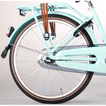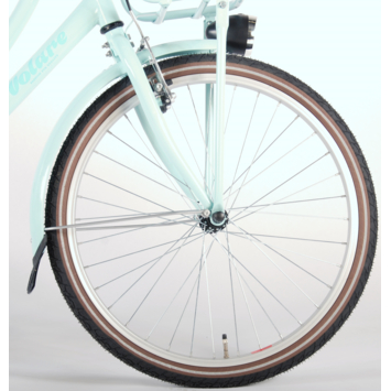 Volare Excellent 24 inch meisjesfiets. Werkelijk een super Top kwaliteit 24 inch meidenfiets met modern design met kwaliteitsvoordrager en een super deluxe kettingkast met mint groene kleuraccenten. Deze meidenfiets heeft een compleet nieuw ontworpen zeer stevige bagagedrager met snelbinders en een extra opgeblazen frame. Luxe heerlijke handgrepen, kwaliteit zacht verend zadel, kwaliteits Thune Goal bracket, alle schroeven en bouten en spaaknippels anti roest, waterlabel stickers, Innova kwaliteit buitenbanden. Batterij voor en achterverlichting, slot. Met aluminium verstelbare kwaliteit standaard. Aan elk detail is gedacht. Extra kwaliteit in o.a. de onderdelen : Prowheel crankset aluminium arm, oversized voorframe, oversized voorvork, Zoom aluminium stuurpen, Zoom stuur, aluminium velgen, kettingspanners en Innova kwaliteitsbanden met reflectie.In modern mint groen. Op deze meidenfiets wil elke jonge dame naar school fietsen. Top kwaliteit voor een lage prijs! Deze fiets is voor 95% afgemonteerd, dus bijna fietsklaar. Wel zo gemakkelijk!.
