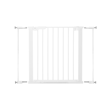 Traphekje Francis wit 73,5 tot79,6 cm is een voordeling metalen hekje in de kleur wit. Traphekje Francis is als traphek en als deurhekje te gebruiken. De breedte is instelbaar van 73,5 tot 79,6 cm en de hoogte is 75 cm. Het traphekje heeft een dubbele vergrendeling en scharniert in twee richtingen. Het grote voordeel van dit traphekje is dat je geen gaten in je muur hoeft te schroeven. Er zijn namelijk geen schroeven nodig om het traphekje te installeren. Bovendien voldoet traphek Francis aan de strenge eisen voor kindertraphekjes. Dit traphek is geschikt voor kinderen van 0-24 maanden.