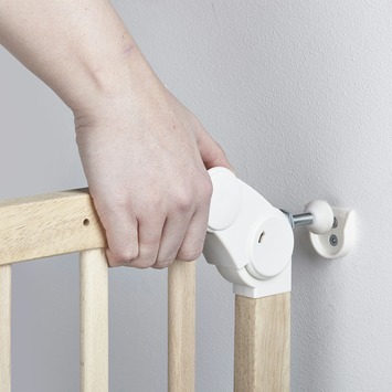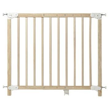 Het Traphekje mila hout 69,5-106,5 cm is een houten klemhekje in naturel kleur. Deze is gemakkelijk in één beweging uit de klempositie te verwijderen en weg te halen maar kan ook vast worden gezet via een voetpedaal. Het traphekje heeft een vaste hoogte van 75 cm en is in de breedte verstelbaar van 69,5 cm tot 106.5 cm, met één hand te bedienen en een driedubbele vergrendeling. Het traphekje voldoet aan de strenge eisen voor kindertraphekjes EN-1930:2011 en is geschikt voor kinderen van 0-24 maanden.