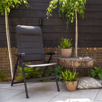 Ervaar optimaal comfort met de opvouwbare Ravenna stoel van Travellife. Deze kampeerstoel biedt luxe door de gewatteerde zitting en leuning, inclusief een hoofdkussen voor extra steun. Met de verstelbare rugleuning, die 7 verschillende standen heeft, stel je de stoel eenvoudig in op jouw ideale zitpositie. De aflopende zitting vermindert de druk op je bovenbenen voor extra comfort. Gemaakt van antraciet Polyweave en een stevig aluminium frame, is de stoel licht, waterafstotend en stevig. Na gebruik vouw je de stoel makkelijk op, ideaal voor kamperen, festivals of ontspannen in de tuin.