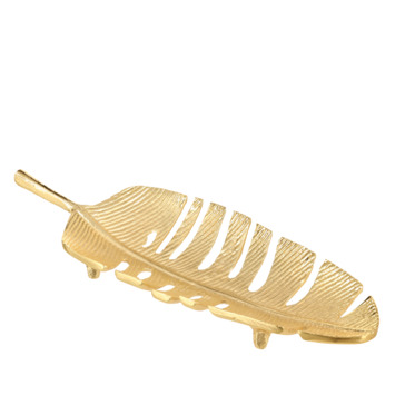 Deze tray in de vorm van een veer is een opvallend accessoire en zorgt voor een beetje bling in een stilleven. De veer is gemaakt van goudkleurig metaal.