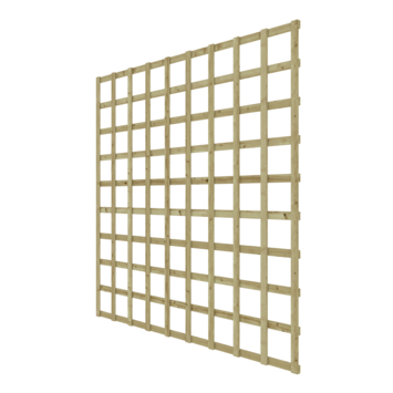 Het trellisscherm van ca. 180 x 180 cm is gemaakt van geïmpregneerd grenenhout en heeft een olijfgroene kleur. Dit scherm biedt een stevige basis voor klimplanten en is ideaal om doorkijkjes in je schutting te creëren. Door de impregnatie is het hout goed bestand tegen weersinvloeden, wat bijdraagt aan een lange levensduur van 15 jaar of meer.