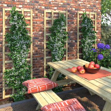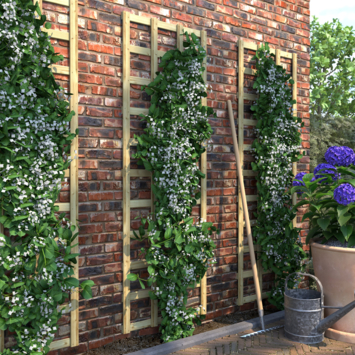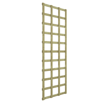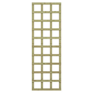 Het trellisscherm van ca. 180 x 60 cm is gemaakt van geïmpregneerd grenen en heeft een olijfgroene kleur. Dit scherm biedt een stevige basis voor klimplanten en is ideaal om doorkijkjes in je schutting te creëren. Door de impregnatie is het hout goed bestand tegen weersinvloeden, wat bijdraagt aan een lange levensduur van 15 jaar of meer.