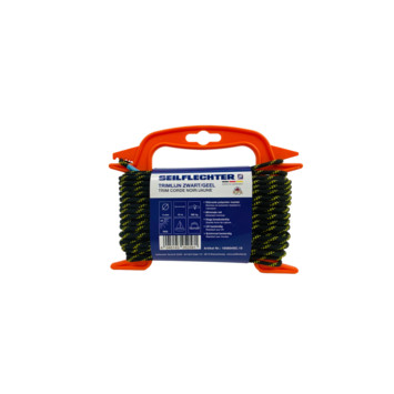 Trimlijn lijn is kwaliteitsproduct van Seilflechter. De diameter is 4mm met een lengte van 15mtr gewikkeld op een herbruikbare haspel, de kleur is zwart met een gele merkdraad. De trimlijn lijn heeft een hoge breek sterkte van 390kg en een minimale rek.