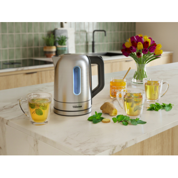 De Tristar WK-1344 waterkoker combineert een modern roestvrijstalen ontwerp met praktische functionaliteit. Met een royale capaciteit van 1,7 liter en een krachtig vermogen van 2200 watt, kook je snel water voor thee, koffie of culinaire bereidingen. De 360° draaibare basis maakt het apparaat geschikt voor zowel links- als rechtshandigen, terwijl de droogkookbeveiliging en automatische uitschakeling zorgen voor veilig gebruik. Het verborgen verwarmingselement en de waterniveau-indicator verhogen het gebruiksgemak.