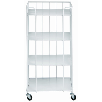 Dit robuuste fraaie verrijdbaar metalen wandrek (trolley) op zwenkwieltjes met 4 metalen legplanken is in het wit gelakt. Afmeting (hxbxd): 91x48x37 cm. Dit verrijdbare metalen rek past vrijwel in elk interieur en is een mooie combinatie met de hogere uitvoering van 142 cm. Dit metalen wandrek is ook in het zwart verkrijgbaar.