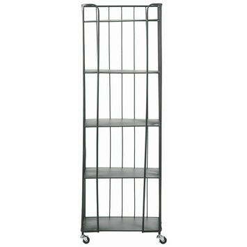 Dit robuuste fraaie verrijdbaar metalen wandrek (trolley) op zwenkwieltjes met 5 metalen legplanken is in het zwart gelakt. Afmeting (hxbxd): 142x48x37 cm. Dit verrijdbare metalen rek past vrijwel in elk interieur en is een mooie combinatie met de lagere uitvoering van 91 cm. Dit metalen wandrek is ook in de kleur wit verkrijgbaar.