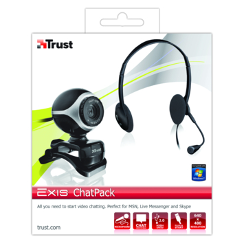 Chatpakket inclusief webcam en headset met microfoon om te chatten en videoconferenties te houden.
