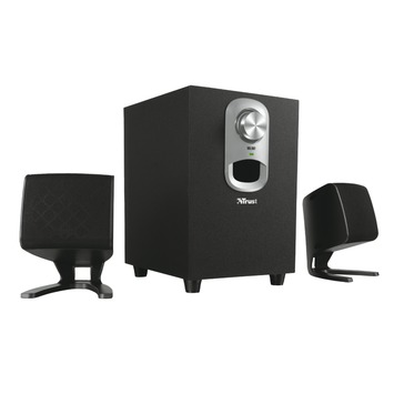 Stijlvolle 2.1 luidsprekerset van 40 Watt met houten subwoofer (20 Watt RMS).