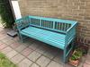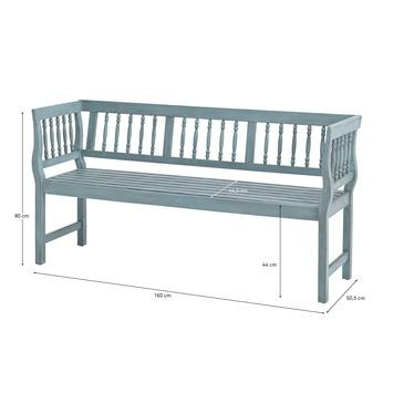 Tuinbank Cannes blauw 43 centimeter hoog, 160 centimeter breed en 50,5 centimeter diep.