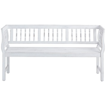 Tuinbank Cannes wit is een tuinbank met een vintage look. De bank is gemaakt van eucalyptushout, heeft een breedte van 160 centimeter, een hoogte van 80 centimeter en een zithoogte van 44 centimeter. Door de antiek witte kleur ziet de bank er ""geleefd"" uit, waardoor de bank die echte vintage look krijgt. Combineer de bank met een paar leuke kussens en je bent klaar om lekker te loungen in je tuin of op het terras. De tuinbank is ook verkrijgbaar in een antiek blauwe kleur. Tuinbank Cannes wit is 43 centimeter hoog, 160 centimeter breed en 54 centimeter diep.