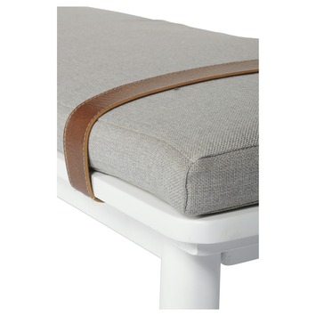 Tuinbank Joyce wit is een leuke toevoeging aan de tuin. Tuinbank Joyce wordt geleverd met kussen, zodat je goed op het bankje kunt zitten. De riemen op het kussen zitten vast met klittenband waardoor het kussen makkelijk afneembaar is. Het bankje is wit en is gemaakt van acacia hout. Daarnaast is tuinbank Joyce ook verkrijgbaar in de natuurlijke bruine kleur.