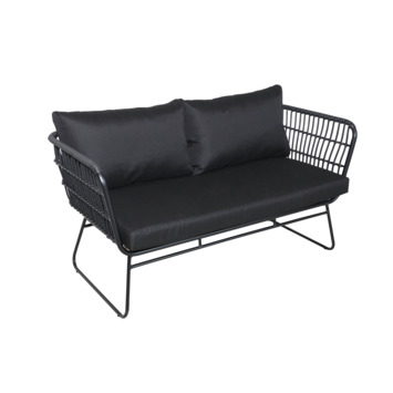 Geef sfeer aan je terras of tuin met dit hippe bankje Madrid. De tuinbank is gemaakt uit zwart staal en polyester en wordt geleverd inclusief kussens. De bank is 145 cm lang, 69,5 cm diep en 78 cm hoog.