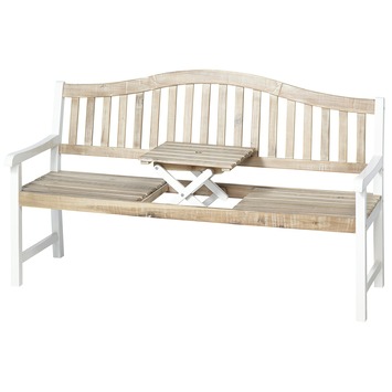 De tuinbank victoria oak/wit is een sfeervolle landelijke tuinbank. De bank is gemaakt van hardhout. De tuinbank heeft een handig uitklapbaar tafeltje die ideaal is om wat spulletjes op te zetten. De tuinbank victoria is ook verkrijgbaar in wit. Doordat hout een natuurproduct is, zijn haar- en krimpscheuren, kleurverschillen en verkleuringen inherent. De tuinbank is 160 centimeter breed.