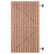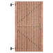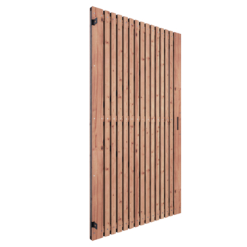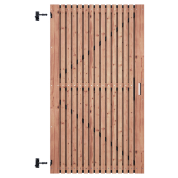 Om de levensduur te verlengen en vergrijzing van het hout tegen te gaan, adviseren wij om direct het hout te behandelen met een daarvoor geschikte beits en dit elke 2 jaar te herhalen. De tuindeur is 178 cm hoog, 99 cm breed, 4,6 cm diep en heeft weinig doorkijk. De tuindeur bestaat uit 62 verticale latten die op het frame zijn vastgemaakt. Het slotgat zit in het midden van de tuindeur, waardoor de deur tweezijdig is en zowel links- als rechtsdraaiend gemonteerd kan worden.