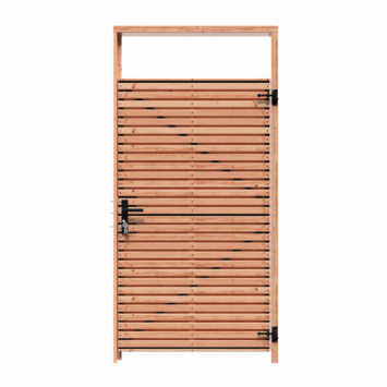 De tuindeur heeft een hoogte van 178 cm, een breedte van 99 cm en een diepte van 5 cm. Dankzij het horizontale ontwerp heb je weinig inkijk, wat zorgt voor extra privacy in jouw tuin. Het slotgat is slim geplaatst, waardoor deze zowel links- als rechtsdraaiend te monteren is. De deur wordt compleet geleverd met duimen en hengen, dus je kunt direct aan de slag!