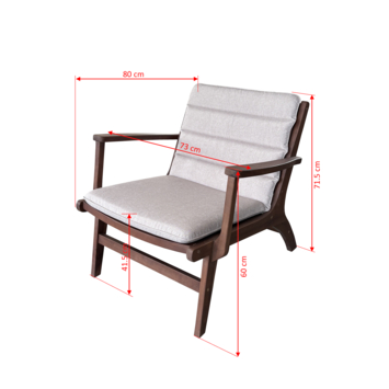 Het frame is van geolied acacia hout en kan tot 160 kg dragen. De fauteuil heeft een zithoogte van 40 cm, zitbreedte 54,5 cm en zitdiepte 52 cm. De armleuningen zorgen voor extra ondersteuning tijdens het zitten.